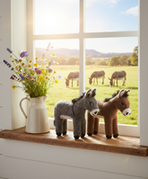 Introducing Lulu, our delightfully quirky needle-felted donkey made from sumptuous alpaca wool! This charming character was inspired by the real Lulu, who faithfully guards Fluff's alpaca family. Handcrafted by talented needle felters in Arequipa, Peru, Lulu showcases authentic donkey features—including her signature back cross and expressive face. No two Lulus are exactly alike; each one emerges from the felting process with its own personality and charm. Perfect for alpaca lovers and collectors seeking a playful, handmade treasure with genuine character!