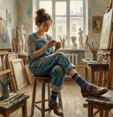 This is a strikingly attractive sock! A casual unisex sock that is proudly made in North Carolina, using 80% baby alpaca yarn Named after the artist who inspired its design and brilliant combination of colors, this sock is part of our art sock collection. A massive amount of baby alpaca makes these socks exceptional on many levels. In-house designs made with an exclusive import 80% baby alpaca yarn. But don't take our word for it, try a pair yourself!