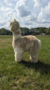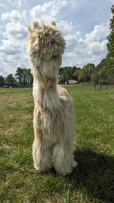 Our Masterpiece Series: the "Bubba." This life-sized Alpaca Sculpture represents the absolute pinnacle of our certified safe alpaca fur artistry. Standing at over 45 inches tall, each "Bubba" is a one-of-one creation, handcrafted by our most senior fur artisans using techniques that take years to perfect.