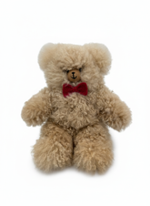 Our signature teddy bear is more than a keepsake — it’s an heirloom of unmatched softness and beauty. Handcrafted from ethically procured 100% baby alpaca fur, this collectible showcases the naturally thick curls of the Huacaya breed, prized for its lush texture and warmth.