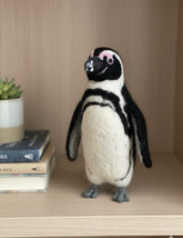 Magellanic Penguins are named after the explorer Ferdinand Magellan whose crew first spotted them in the year 1520. Our Magellanic Penguin Sculpture is part of our penguin collection. We love making these aquatic, flightless birds that mostly live in the southern hemisphere, especially in Antarctica. Our expert felting artists have years of experience in this craft. Each figure seeks to capture the true essence of its species with special attention to their counter-shaded dark and white plumage, and their flippers "wings". The nature of handcrafting makes each piece an original with slight variations.