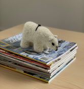 The polar bear is a large bear native to the Arctic and nearby areas. It is closely related to the brown bear, and the two species can interbreed. The polar bear is the largest extant species of bear and land carnivore, with adult males weighing 300–800 kg. Polar Bear Wildlife Felted Alpaca Sculpture captures the stark beauty and elegant nature of this wildlife creature. They are carefully created by our expert needle felters in Arequipa, Peru. This piece is part of our wildlife collection, where vast species form the web of life from the arctic to Africa. We seek to capture the true essence of each animal with special attention to shape, markings, and color. Due to the hand crafting process, each piece is original with slight variations.